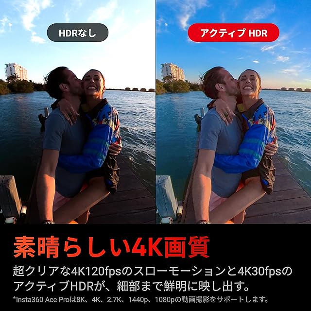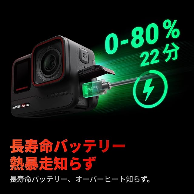 2.4インチフリップ式タッチスクリーン:巨大なフリップ式タッチスクリーンで操作性が向上。 どんなアングルからでも簡単にプレビューできます。 冒険仕様: 最先端のFlowState手ブレ補正により、激しい衝撃や揺れでも映像を安定。 Ace Proは10m防水で、-20°Cの環境下でも撮影でき、ウィンタースポーツ撮影にも対応。