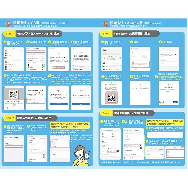 【ご確認ください】ご注文いただいた後、通常は注文日を含む1営業日以内に、http://jp.www.mewfi.com/esim にて注文番号とメールアドレスを入力していただくことで、eSIM(QRコード)および設定方法をメールでお送りします。お急ぎの場合は、お支払い完了後に弊社の24時間対応カスタマーサポート(LINE ID: @014hhnww)までご連絡ください。すぐにQRコードを発行いたします。