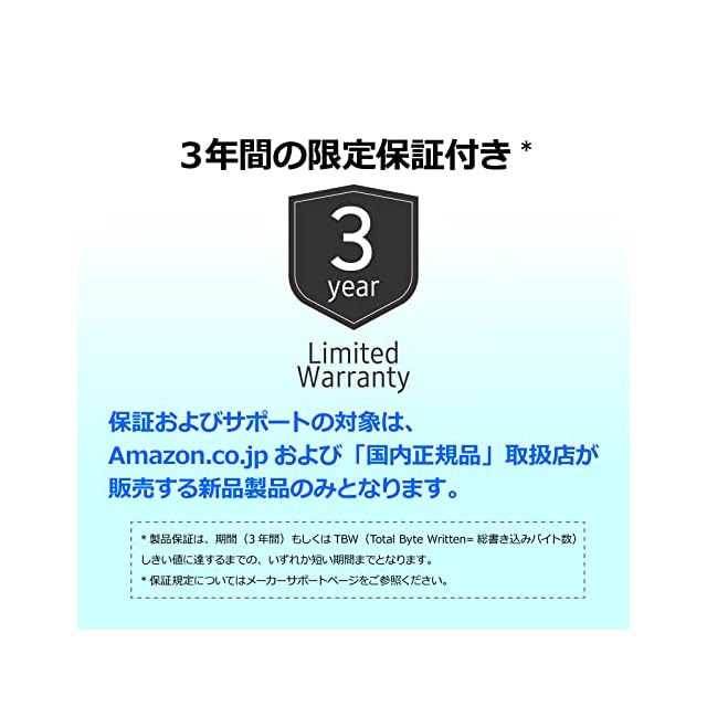 : 3年間/TBW 720TB ※いずれか短い期間まで