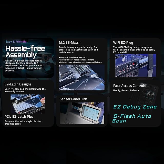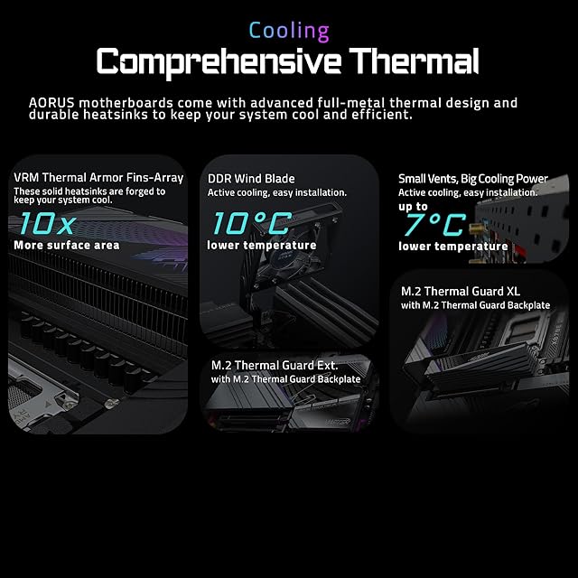 リアルタイム分析によりAI処理、システムを高速化しパフォーマンスを向上させます。各種安全機構も搭載しており、消費電力の削減と最適な電源効率を実現しマザーボードを保護します。