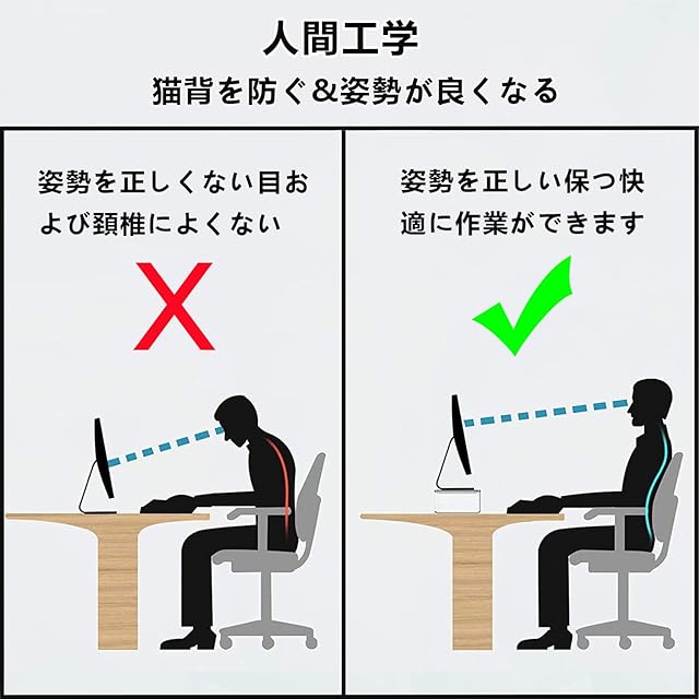 ⭐【猫背対策】:この商品は人間工学に基づいたデザインで、パソコンはモニター台に置くと、モニターの高さは普通により10cmにアップさせます。モニタースタンドと目を揃えて、肩と首のリラックスを確保します。猫背を防止することができ、頚椎症等に伴う痛みや目の疲れ、背痛等も緩和することができます。仕事の効率が良くなり、楽にできます。長時間パソコン作業する方にぴったりです。