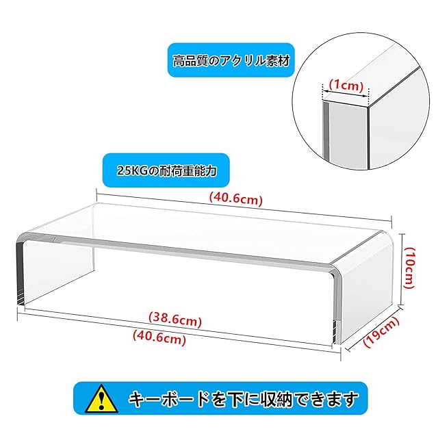 商品名:hengshao モニター台 モニタースタンド アクリル ディスプレイ台 パソコンスタンド PCスタンド プリンタ台 机上台 キーボード収納 省スペース 姿勢改善 安定性 耐荷重25KG (40.6x19x10cm)