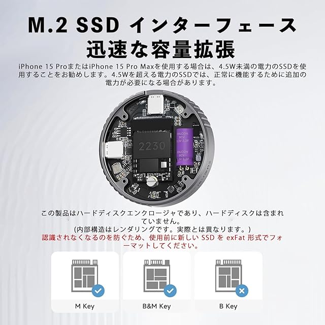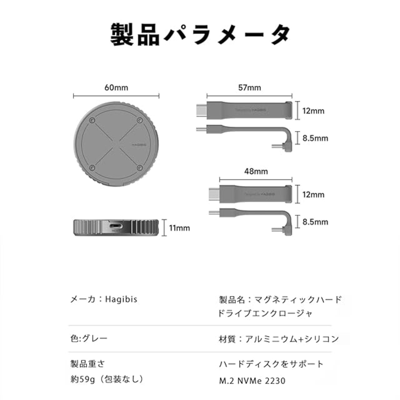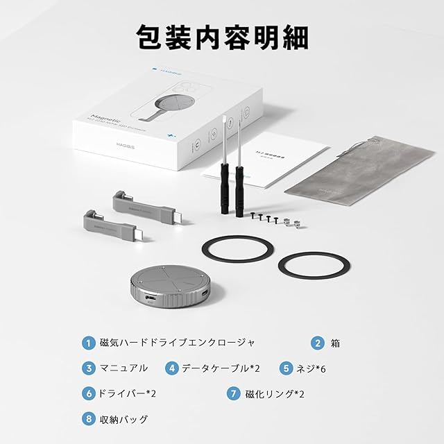 商品名:Hagibis 磁気M.2 2230 NVMe SSD外付け Magsafe付き 外付けSSDケース iPhone 15 Pro Max ProRes USB C 3.2 Gen2 Type-C 10Gbps - NVMe PCI-Eアダプター アルミニウム