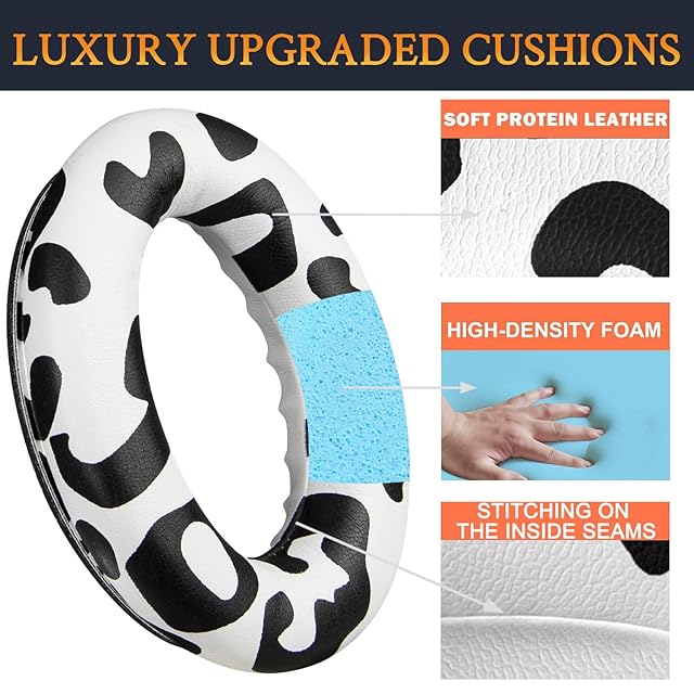 商品名:SOULWIT イヤーパッド イヤークッション Bose QuietComfort 45 (QC45)/QuietComfort SE (QC SE)/New Quiet Comfort Wireless 用 交換パッド ワイヤレスヘッドホン 耳当て 耳パッド ソフトレザー ノイズアイソレーション 高密度フォーム (ユキヒョウ柄)