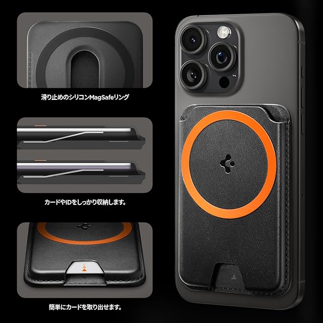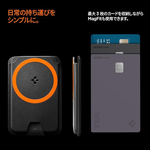 商品名:[Spigen] MagSafe対応 カードケース 3枚入り マグネット内蔵 磁気シールド iPhone 15, iPhone 14, iPhone 13, iPhone 12 対応 マグネット スマホ カードケース 交通系 ICカード マグフィット+ AFA06866 (ブラック)