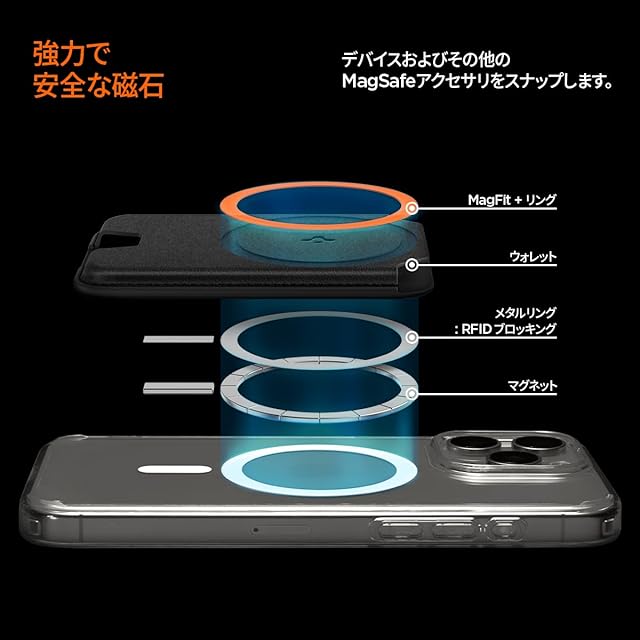 ウォレットを取り外さずに他の MagSafe 製品と一緒に使用できます。 【注意】ワイヤレス充電には対応しておりません。