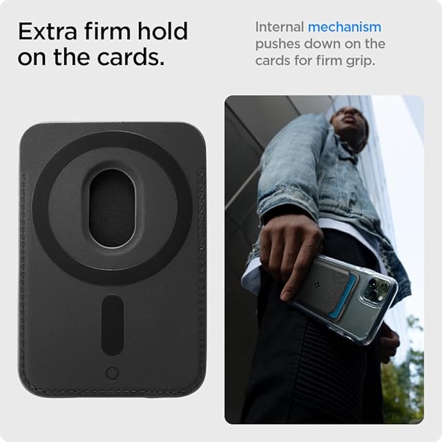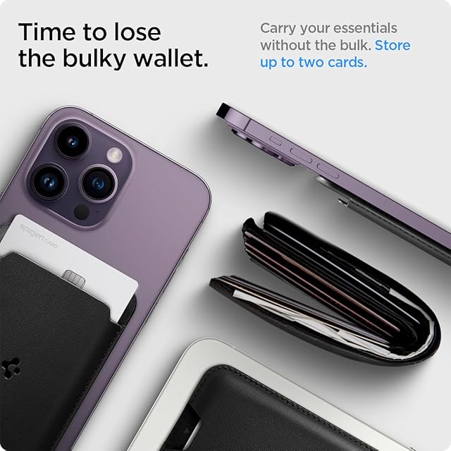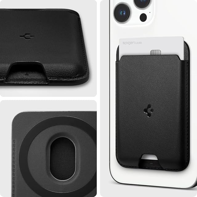 Spigen MagSafe対応 カードケース マグネット内蔵 高級レザー 磁気シールド スリム 背面 ウォレット iPhone 14/13/12 対応 スマホ マグネット付着 交通系 ICカード バレンティヌス マグフィット AMP02284 (ブラック) | TREND DESIGN 家電専門店