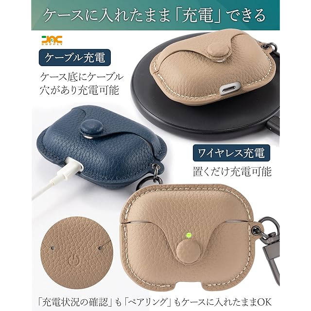 [J&C] AirPods Pro ケースカバー エアーポッツプロ ケース に対応 Apple [前面LEDが見える] 本革素材 全面保護 キズ防止 Airpods本体紛失防止一体型構造 耐衝撃 軽量 ワイヤレス充電対応 (マーキュリーグレー) | TREND DESIGN 家電専門店