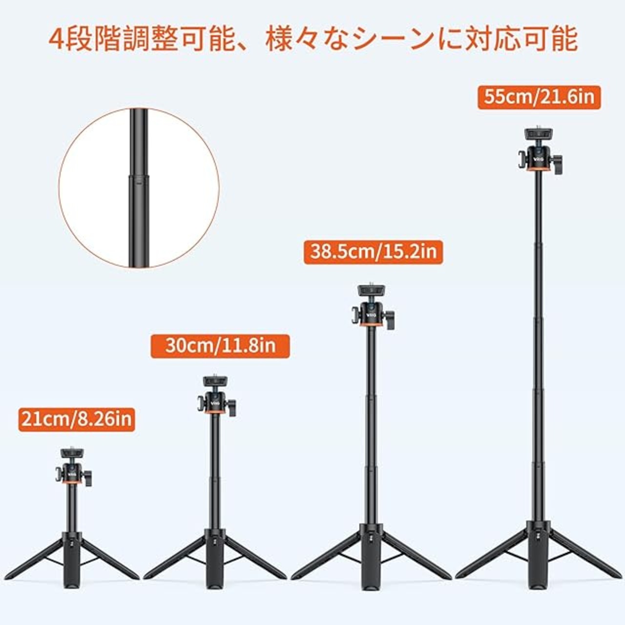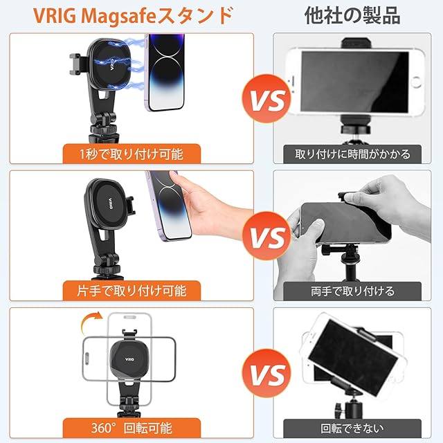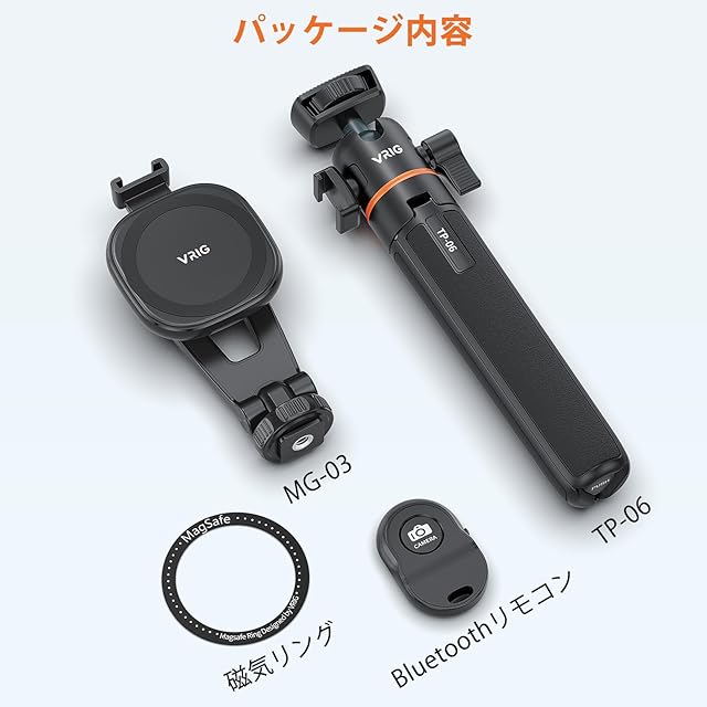 商品名:VRIG スマホ 三脚 マグネット Magasfe対応 自撮り棒 スマホホルダー三脚 磁気マグネット式 軽量 4段伸縮 22-55cm 超強力磁力 Bluetoothリモコン付 360度雲台 コールドシュー付きiPhone/Android/カメラなど対応(スマホホルダー+ミニ三脚)