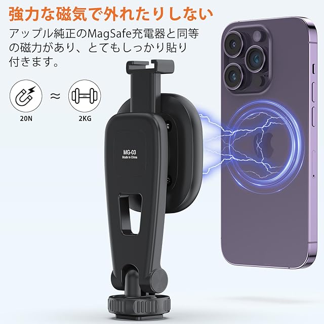 【20N超強力磁石で確実固定】高性能 20N マグネット搭載で、激しい動きの中でもスマホをしっかり保持。自宅での映画視聴、外出時の VLOG 撮影、会議でのスクリーン共有など、あらゆるシーンで安定した支持を提供します