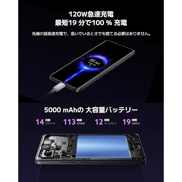 【パワフルな体験を】120W Xiaomi ハイパーチャージを搭載、最短19 分で100 % 充電でき、急いでいるときでも慌てる必要はありません。また、便利な画面内指紋認証センサーにより、ロック解除、支払い、その他の操作が簡単に行えます。シームレスなアンロック体験は、グレアが低くなるとさらに向上し、低光量環境でアンロックしたときの視覚刺激を軽減します。