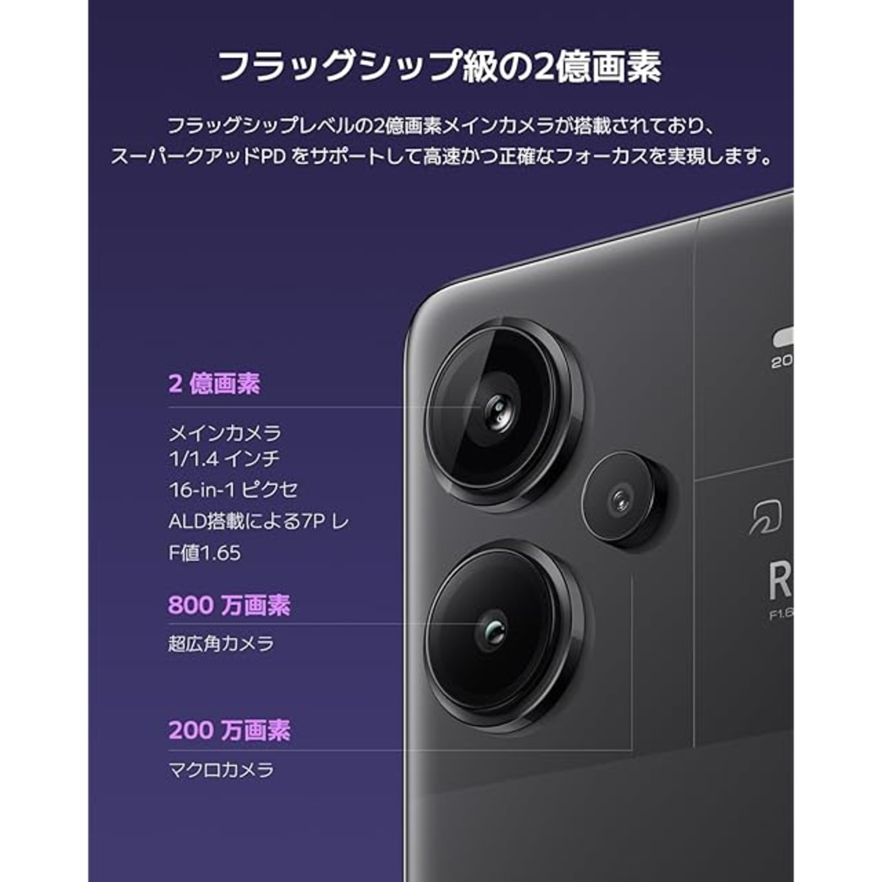 【フラッグシップ級の2億画素】フラッグシップレベルの2億画素メインカメラが搭載されており、スーパークアッドPD をサポートして高速かつ正確なフォーカスを実現します。光学式手ブレ補正(OIS)と電子式手ブレ補正(EIS)の強力な組み合わせにより、手ブレ防止性能が大幅に向上しました。Xiaomi の強化された画像処理性能により、シャッターを押すたびに最高の写真を撮影できます。
