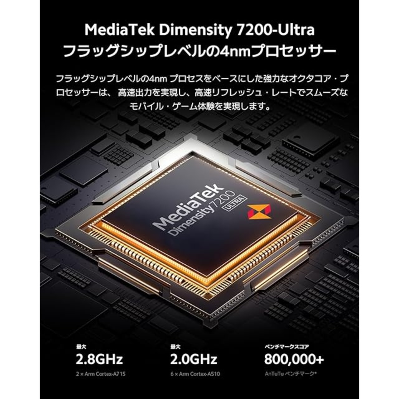 【フラッグシップレベルの4nmプロセッサー】フラッグシップレベルの4nm プロセスをベースにした強力なオクタコア・プロセッサーは、高速出力を実現し、高速リフレッシュ・レートでスムーズなモバイル・ゲーム体験を実現します。