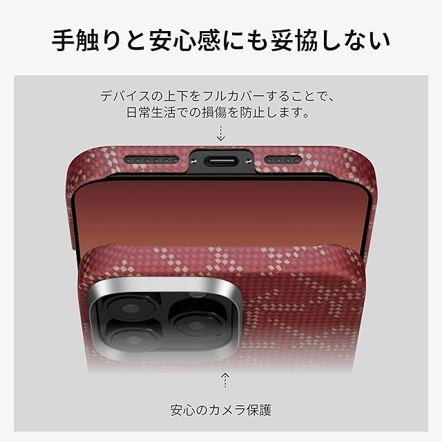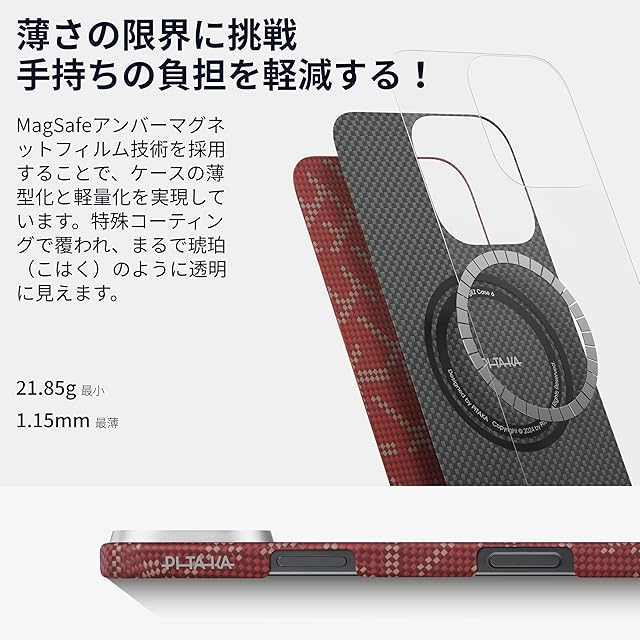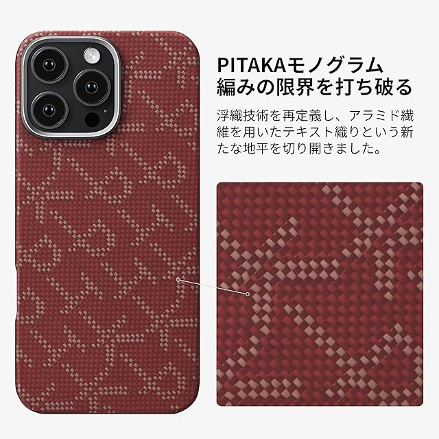 「PITAKA」iPhone 16 Pro用 極薄/浮織ケース MagSafe対応 上下カバーした アラミド繊維製 ワイヤレス充電対応 耐衝撃 薄型 おしゃれ (9周年記念版-レッド) | TREND DESIGN 家電専門店