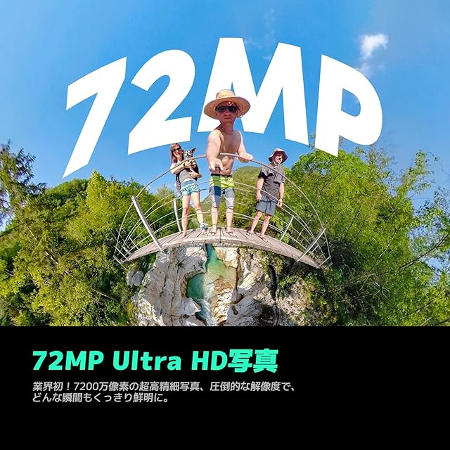 【より明るく、より精細に・72MP 360° 写真】当360度カメラは新型デュアル1/2インチセンサーを搭載して、細部までくっきりとした美しい映像を捉え、アクションを鮮やかに躍動させる。それに、DNG8 RAWフォトモードにより、暗い環境でも画質を向上させ、ダイナミックレンジと編集の自由度を高めます。7200万像素の超高精細写真、圧倒的な解像度で、どんな瞬間もくっきり鮮明に!