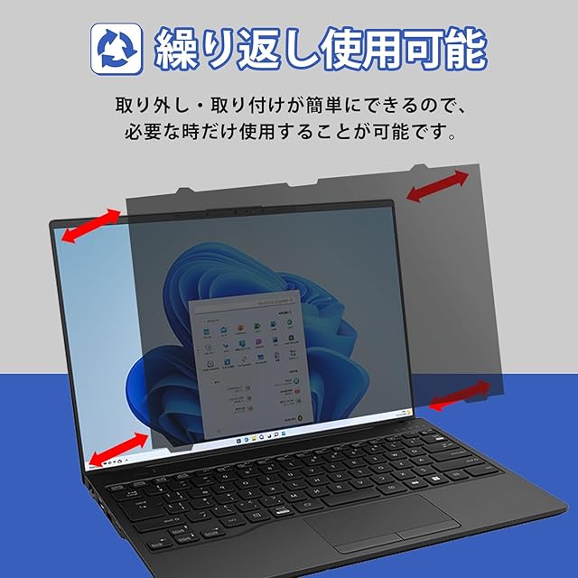 商品名:富士通 LIFEBOOK FMV-NPF7T と互換性あり 覗き見防止フィルター プライバシーフィルター ブルーライトカット 保護フィルム 着脱可能 両面使用 はめ込み式