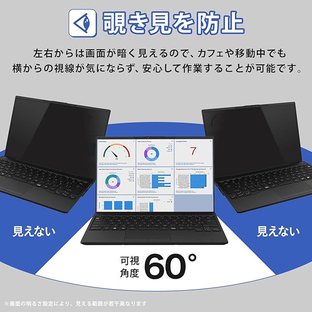 ◆【覗き見防止】画面の正面を中心に約60°(左右30°)より外の角度からは画面が真っ黒に見えるので、プライバシーが守られます。※ディスプレイの明るさによって、見える範囲が若干異なります。【対応機種】富士通 FMV LIFEBOOK UH-X/H1、UH90/H1、WU-X/H1、WU2/H1、WU4/H1