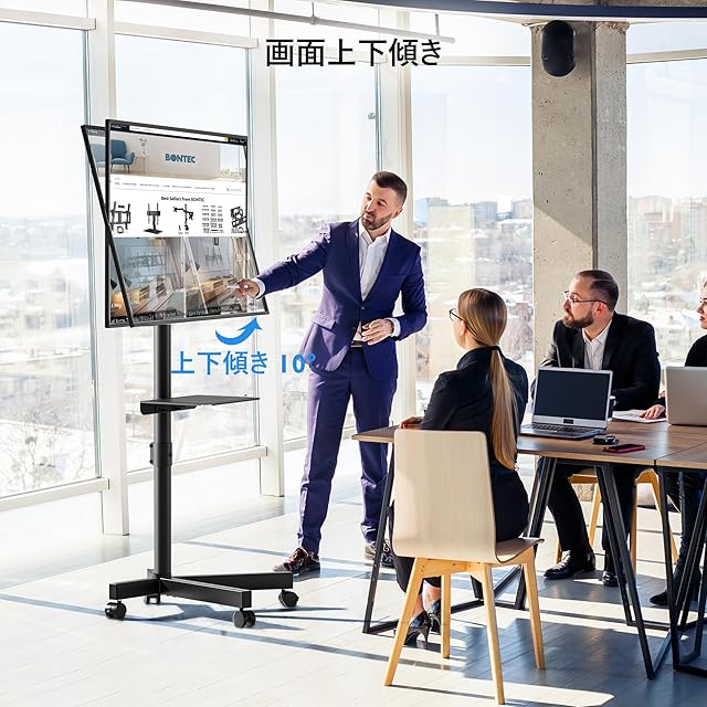 商品名:1homefurnit 移動式 テレビスタンド キャスター付き 23-55型 フラット&曲面テレビ用 VESA 400x400mmまで 上下傾き調整可能 25kg耐荷重 高さ調整機能付き メディア棚付き ブラック 壁寄せテレビスタンド モニタースタンド