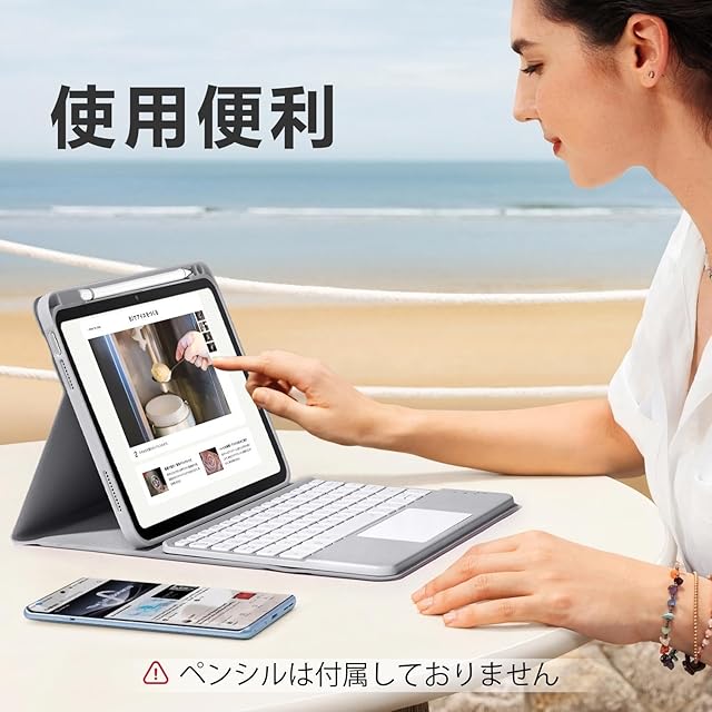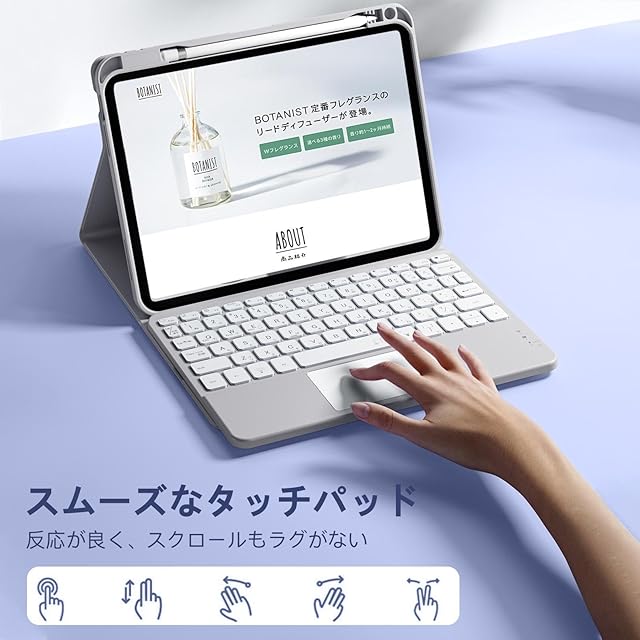 【JIS配列の日本語キーボード】JIS規格準拠の日本語配列で、かな入力や英語入力も対応。12種類のマルチメディアキーを搭載し、音量調整やプレーヤー操作も簡単!トラックパッドが付属し、ジェスチャ操作対応。ドキュメント編集やアプリ操作をスムーズに行えるため、作業効率が大幅アップ。※iPadOS 17.5以上が必要。