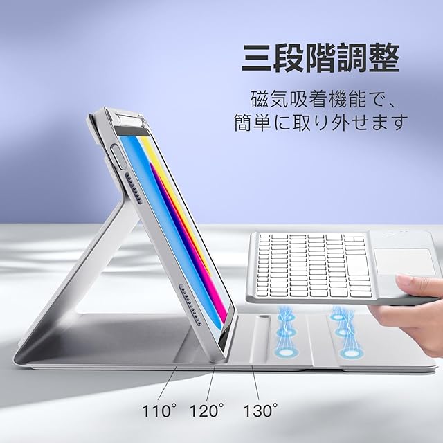 【脱着式キーボード&便利なApple Pencil収納】 キーボードは脱着式で、強力なマグネット内蔵により安定して装着可能。Pencilホルダー付きで、ペンやアダプタをしっかり収納。持ち運びも便利!作業や動画視聴に合わせて自由に角度調整可能。様々なシーンで活躍!