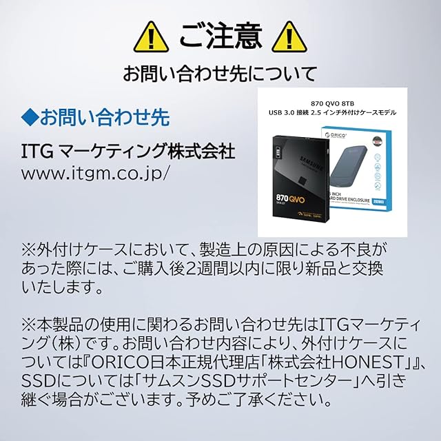 :【SSD】 3年間/TBW 2,880TB ※いずれか短い期間まで 【外付けケース】初期不良(製造上の原因による不良)の場合は2週間以内で交換です。