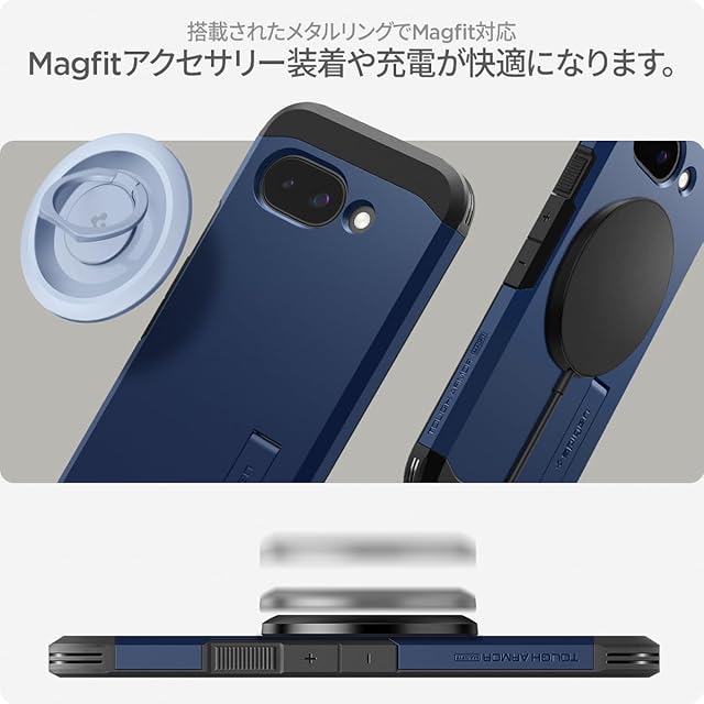 商品名:Spigen 【創業18年の技術力】 Pixel 9a ケース MagSafe対応 マグネット搭載 スタンド付き マット 耐衝撃 米軍MIL規格 タフ・アーマー(AI)・マグフィット ACS09047 (ネイビーブルー)