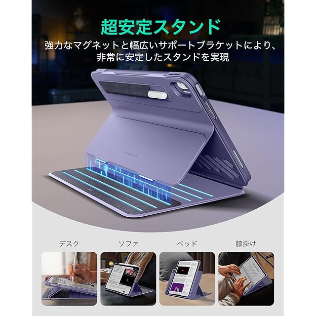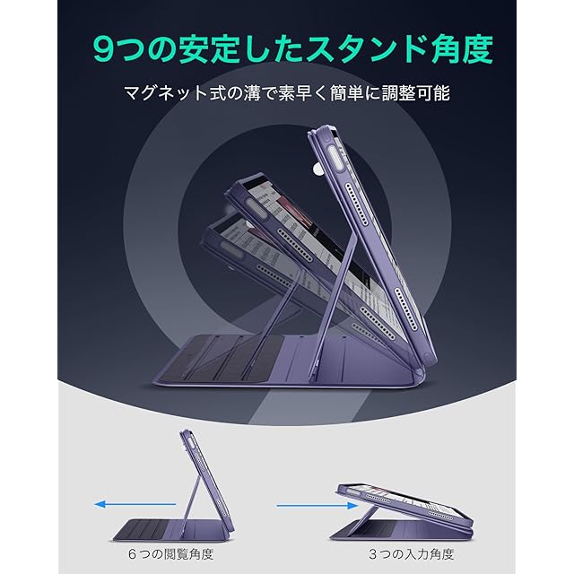 商品名:ESR iPad Air 11インチ ケース (M3/M2、2025/2024) iPad Air 第5/4世代 (2022/2020)専用カバー 取外し可能なマグネットカバー付き回転式ケース 縦/横向きスタンド 9段階の角度調節 Pencil Pro/USB-C完全対応 Shiftシリーズ ラベンダー・パープル