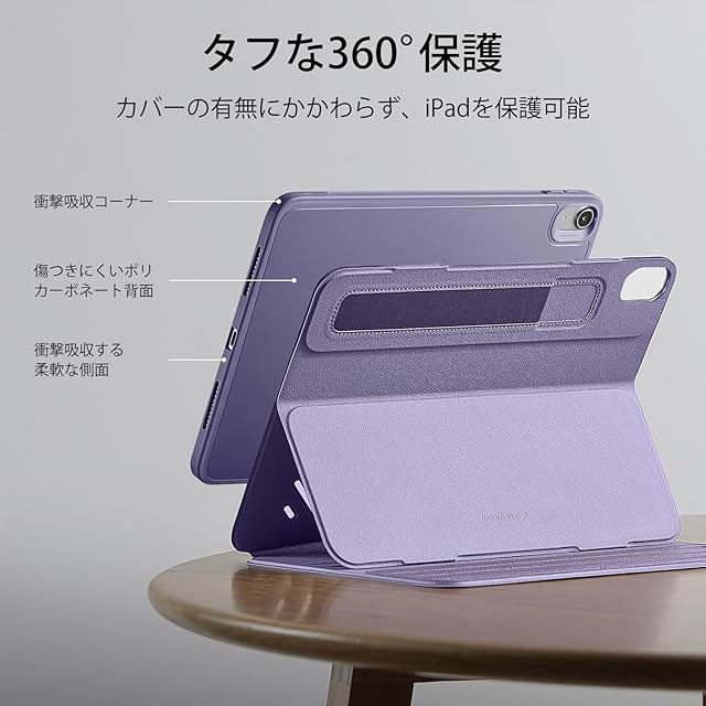 ESR iPad Air 11インチ ケース (M3/M2、2025/2024) iPad Air 第5/4世代 (2022/2020)専用カバー 取外し可能なマグネットカバー付き回転式ケース 縦/横向きスタンド 9段階の角度調節 Pencil Pro/USB-C完全対応 Shiftシリーズ ラベンダー・パープル | TREND DESIGN 家電専門店