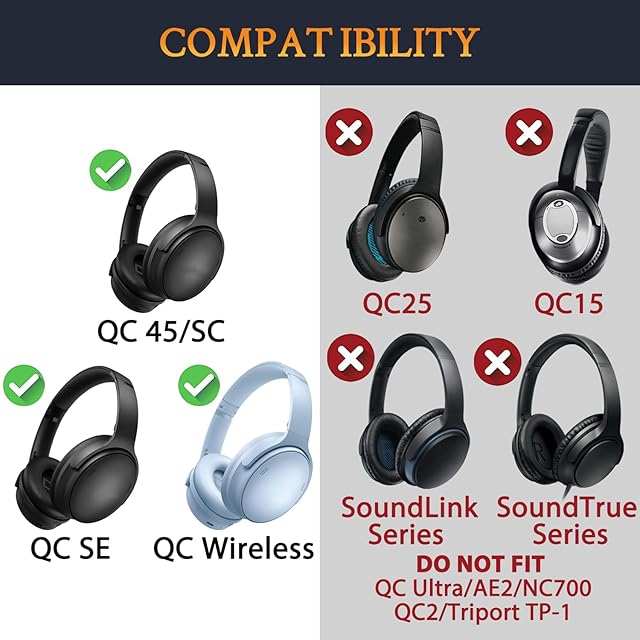 【対応機種】QuietComfort 45 (QC45)/QuietComfort SC (QC SC)/QuietComfort SE (QC SE)/New QuietComfort Wireless Over-ear ヘッドセットと互換性があります。