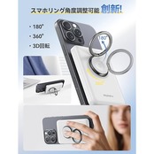 【スマホリング付き・回転可能】モバイルバッテリーの多機能性と便利さをより一層にするスタンドが内蔵されます。軽く引くだけで、充電器が一瞬に多機能なスマホスタンドに変身し、スマホの充電と使用が便利になります。しっかりと360°までお好みの角度を自由に調整でき、充電しながら動画視聴やビデオ通話が可能です。さらに、スマホリングを指を通して簡単に持ち運べます。両手が忙しい時や、手に物がたくさんある時でも、指にぶら下がるだけで手を自由に使えます。モバイル充電器とスマホスタンドを一体化した、1台多役で、至れり尽くせりの万能感、機能性強いモバイルバッテリーがこれにしかないです。