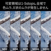 【1枚で5段分の減光域】1 ~ 5 ストップ(ND2~32)の範囲でND濃度を調整できます。
