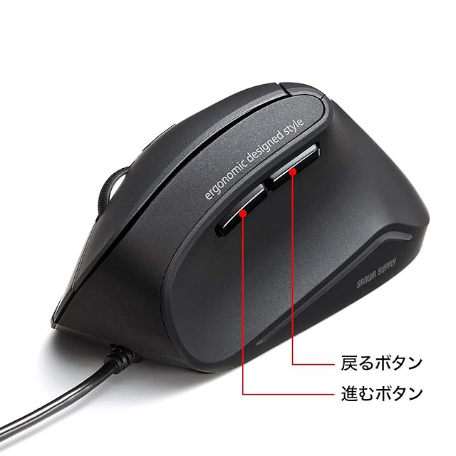 商品名:サンワサプライ エルゴノミクスマウス 静音 有線 腱鞘炎防止 ブルーLED 5ボタン 大型 MA-ERG9N