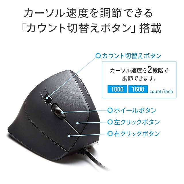 用途に合わせてカーソル速度が変更できる、カーソル速度切替機能付きです。1000・1600の2段階の切替えができます。