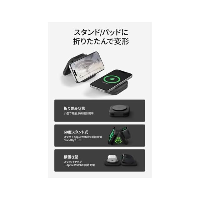 【iPhoneとApple Watchを同時充電】Qi2対応のiPhone 12以降のiPhoneとApple Watchを同時急速充電 *急速充電対応モデルはWatch Series 7以降