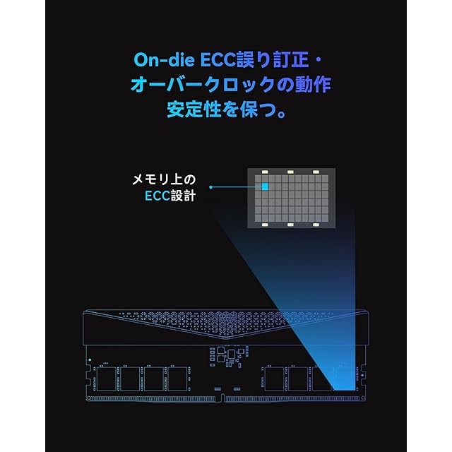 【オーバークロック対応】Intel XMP 3.0および AMD EXPO認定。XMPプロファイルによる簡単にオーバークロックできます。また、オンダイ ECC(ODECC)は限界を超えながら究極のパフォーマンスを持続し、データ完全性の維持に役立ちます。