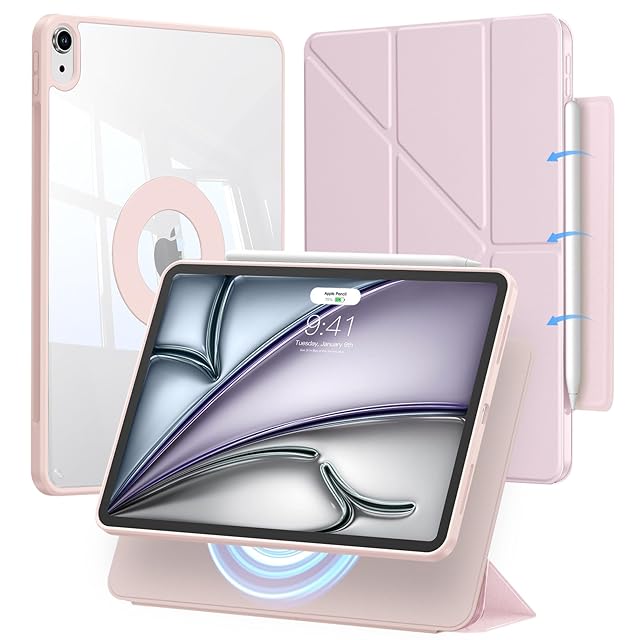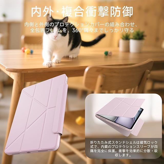 iPad Air 11インチ ケース(M3/M2、2025/2024)第5/4世代 ケース(2022/2020)iPad Air4/5 専用カバー 回転式 縦/横向きスタンド 取り外し可能マグネットカバー 折りたたみ 角度調整可能 衝撃保護 安定設計 Pencil Pro/USB-C完全対応 | TREND DESIGN 家電専門店