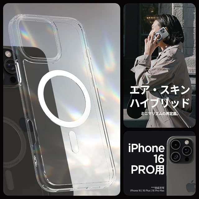 商品名:Spigen 【重さ28.5gの超軽量】iPhone 16 Pro ケース MagSafe対応 軽量 クリア 透明 薄型 ストラップホール エアスキン・ハイブリッド・マグフィット ACS08111 (クリスタル・クリア)