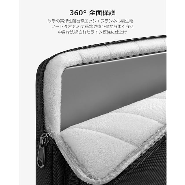【軍用規格の360°全面保護】このパソコンバッグは四角にある特許取得のゴム「CornerArmor」クッション、PC四辺をフル周る厚手の高弾性エッジやふわふわとしたフランネル裏生地の組合せが、超強耐衝撃力でパソコンを衝撃や意外の落下から守り、軍用落下試験(規格MIL-STD-810H:2019)をクリア。