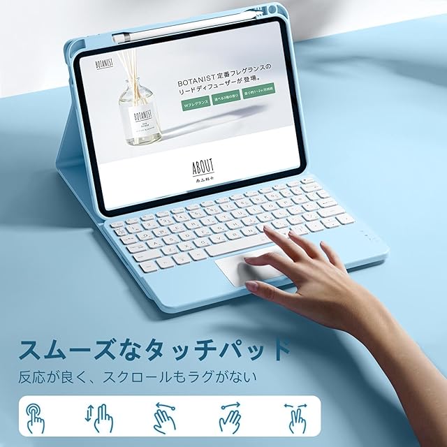 【JIS配列の日本語キーボード】JIS規格準拠の日本語配列で、かな入力や英語入力も対応。12種類のマルチメディアキーを搭載し、音量調整やプレーヤー操作も簡単!トラックパッドが付属し、ジェスチャ操作対応。ドキュメント編集やアプリ操作をスムーズに行えるため、作業効率が大幅アップ。※iPadOS 17.5以上が必要。