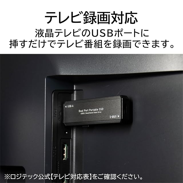 商品名:ロジテック SSD 外付け 1TB ポータブル 高速 type-C type-A 両対応 テレビ録画 TV USB-C typeC 読込速度1000MB/秒 PS5 Pro PS4 対応 スティック USBメモリサイズ LMD-SPCH100UAC