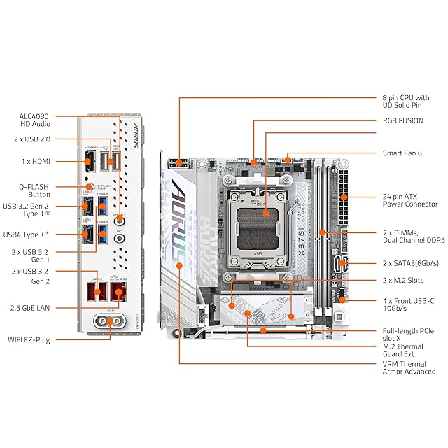 GIGABYTE X870I AORUS PRO ICE - AMD Ryzen 用 ホワイト色 Mini-ITX 小型PC向けゲーミングマザーボード MB6574