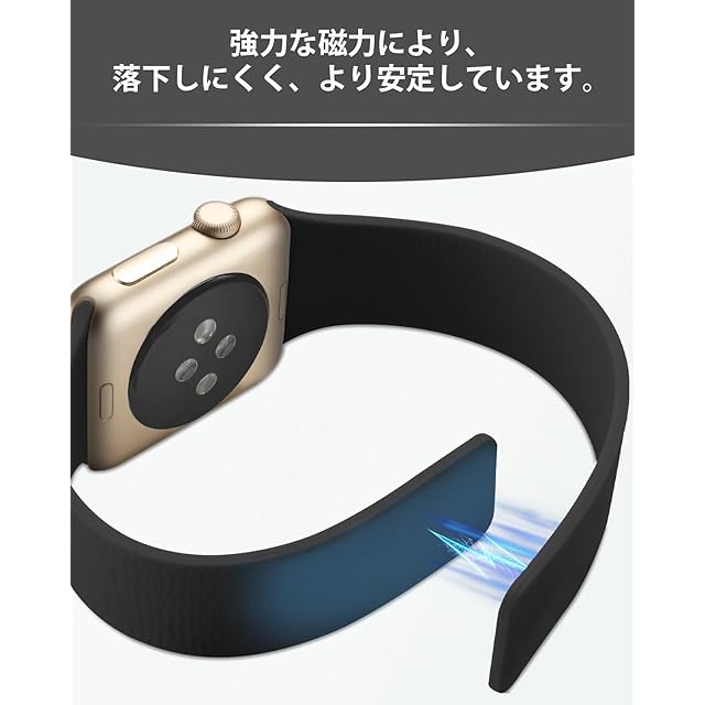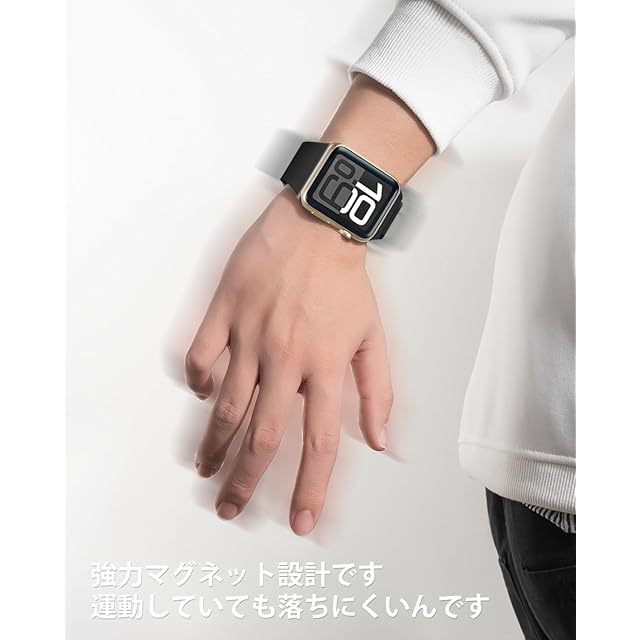 ピタッと吸着する磁力デザイン 独自開発の磁石が手首に密着。運動中でもズレにくく、Apple Watchの落下を防止(※磁力は時計精度に影響なし)