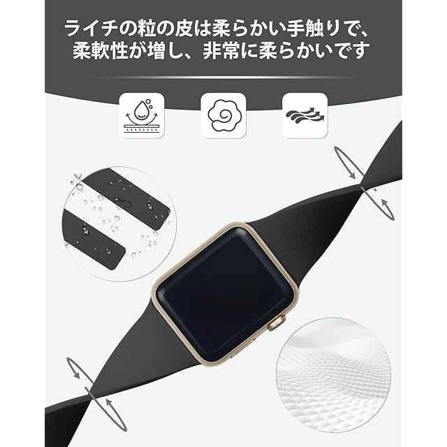 ライチ風シリコンで上質な肌触り 本物のライチ果皮を思わせる凹凸テクスチャーが、しっとりなめらかな装着感を実現。汗や摩擦に強く、長く美しいツヤを保ちます(抗菌加工付き)