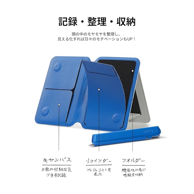 【記録・整理・収納】 記録:突然のアイデアから買い物リストまで自由にメモ可能。整理:スタンドを開くとすぐに必要な情報が確認でき、効率よくタスクを管理。収納:クリップボード裏のフォルダーで、大事なメモを保管。探しやすく、後で振り返るのも簡単です。