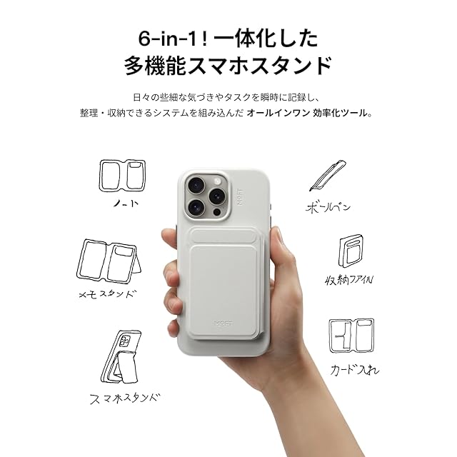 商品名:MOFT【公式直営店】スマホスタンド モフト インスピレーションスタンド&ノート 折りたたみボールペン MagSafe対応 iPhone 16/15/14/13/12シリーズ対応 ノートパッド付け 全機種対応 軽量 折りたたみ アイアンリング付き MOVAS™素材 手書き/記録/リマインダー/フォルダー/ワークスペース