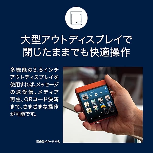 メインディスプレイ : 約6.9インチ 2,640x1,080 (FHD+)、pOLED、22:9、リフレッシュレート 最大120Hzアウトディスプレイ : 約3.6インチ 1,056 x 1,066 、 pOLED、リフレッシュレート 最大90Hz