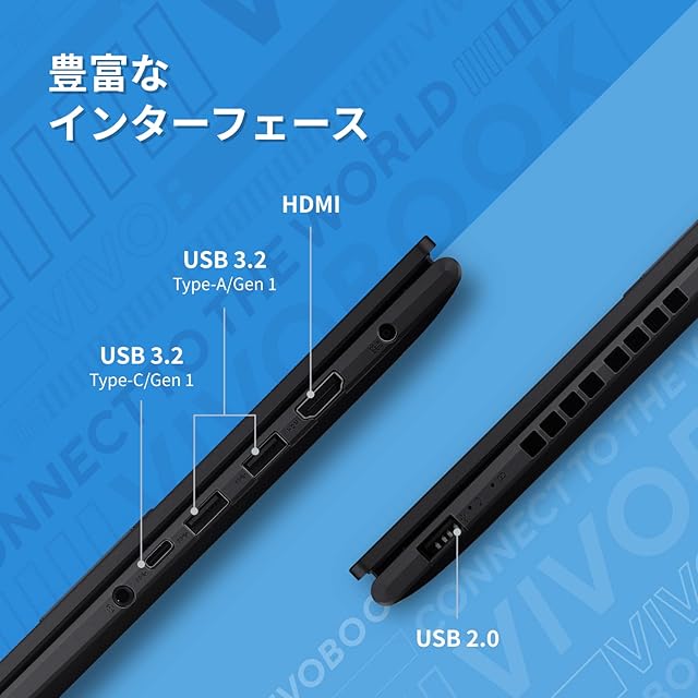 【USBポート】USB3.2 (Type-C/Gen1) ×1 ※データ転送のみサポート、USB3.2 (Type-A/Gen1) ×2、USB2.0×1【外部ディスプレイ出力】HDMI×1【通信機能】無線LAN:IEEE802.11a/b/g/n/ac/ax (Wi-Fi 6E), Bluetooth 5.3【カードリーダー】なし【その他】指紋認証対応、PC Game Pass (3ヶ月利用権)