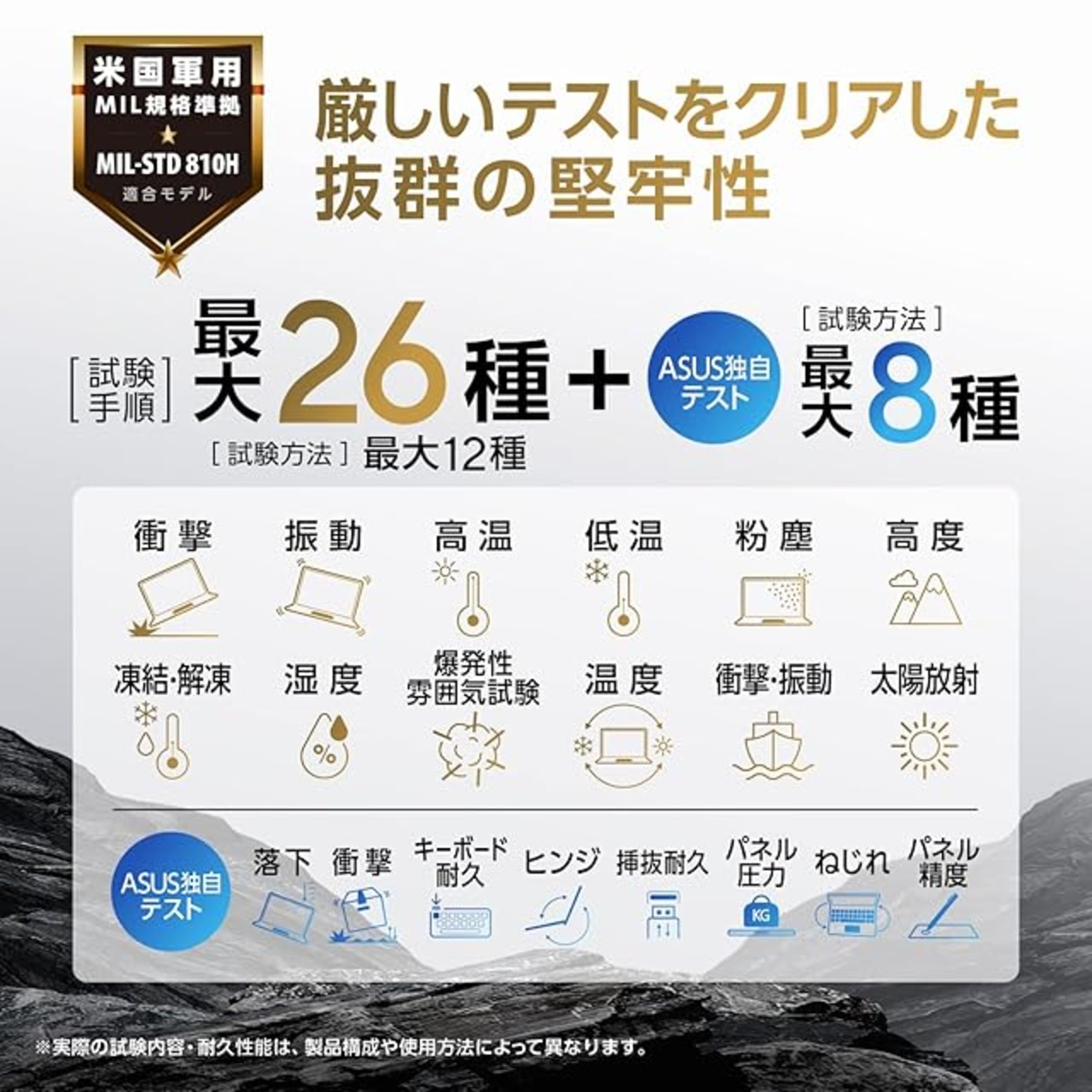 【本体:購入日より12ヵ月間のインターナショナル+購入日より12ヵ月間のASUSのあんしん(日本国内・要登録)※製品購入後30日以内にMyASUSで製品登録が必要】 【バッテリーおよびACアダプター:購入日より12ヵ月間の日本国内】【主な付属品】製品マニュアル、製品書、ACアダプター