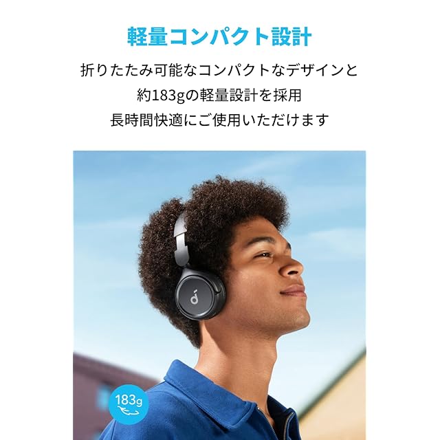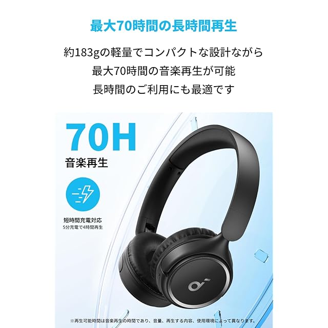 最大70時間の長時間再生:約183gの軽量でコンパクトな設計ながら最大70時間の音楽再生が可能で、長時間のご利用にも最適です (再生可能時間は音量や使用環境によって異なります)。