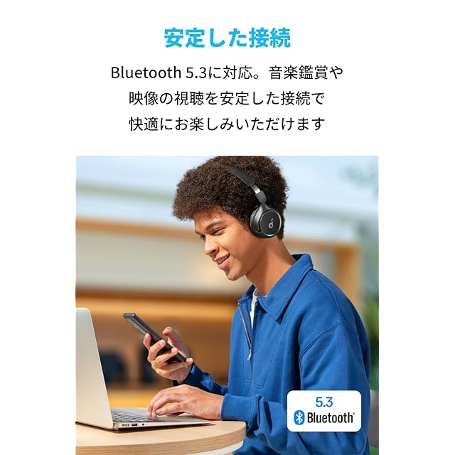 Bluetooth 5.3による安定した接続:Soundcore H30iはBluetooth 5.3に対応。音楽鑑賞や映像の視聴を安定した接続で快適にお楽しみいただけます。